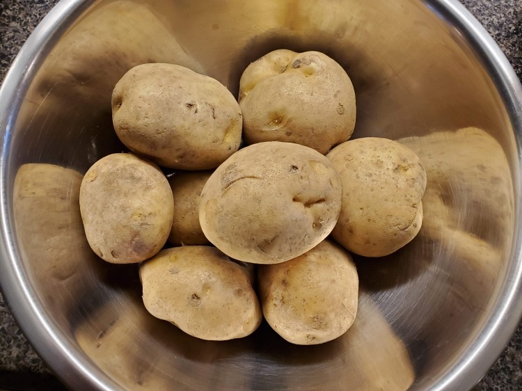 Okay, time to talk potatoes. Part of this whole experiment is living cheaply, but trying to buy locally. This soup is a perfect nexus of those concepts because Maine potatoes are local and cheap. And really, really delicious: