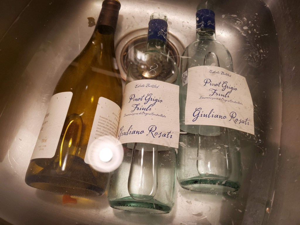 The hot water usually does its job on the adhesives, but I’ve found this varies by specific bottle. As a general rule – and I’m not making this up – the more expensive wines have much more troublesome labels. I’m in the process of satisfying my own curiosity about why this is the case, but for now just know that cheap wine = quickly naked bottles.