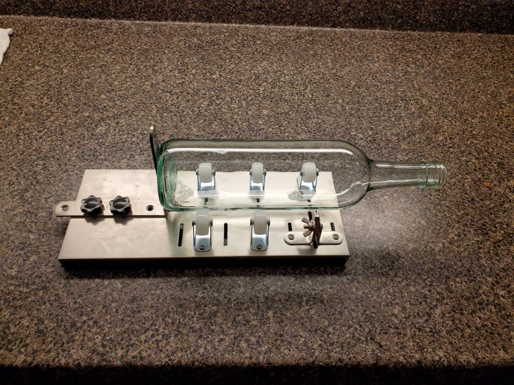 Step 1: Score the bottle. I use a rig from Amazon that was about $20.00, and so far has made this part of the process pretty straight forward: