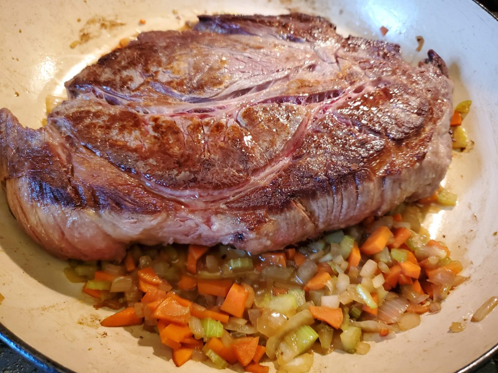 Step two: sear the roast, and sweat the veggies. But first, let’s talk about the cooking vessel.