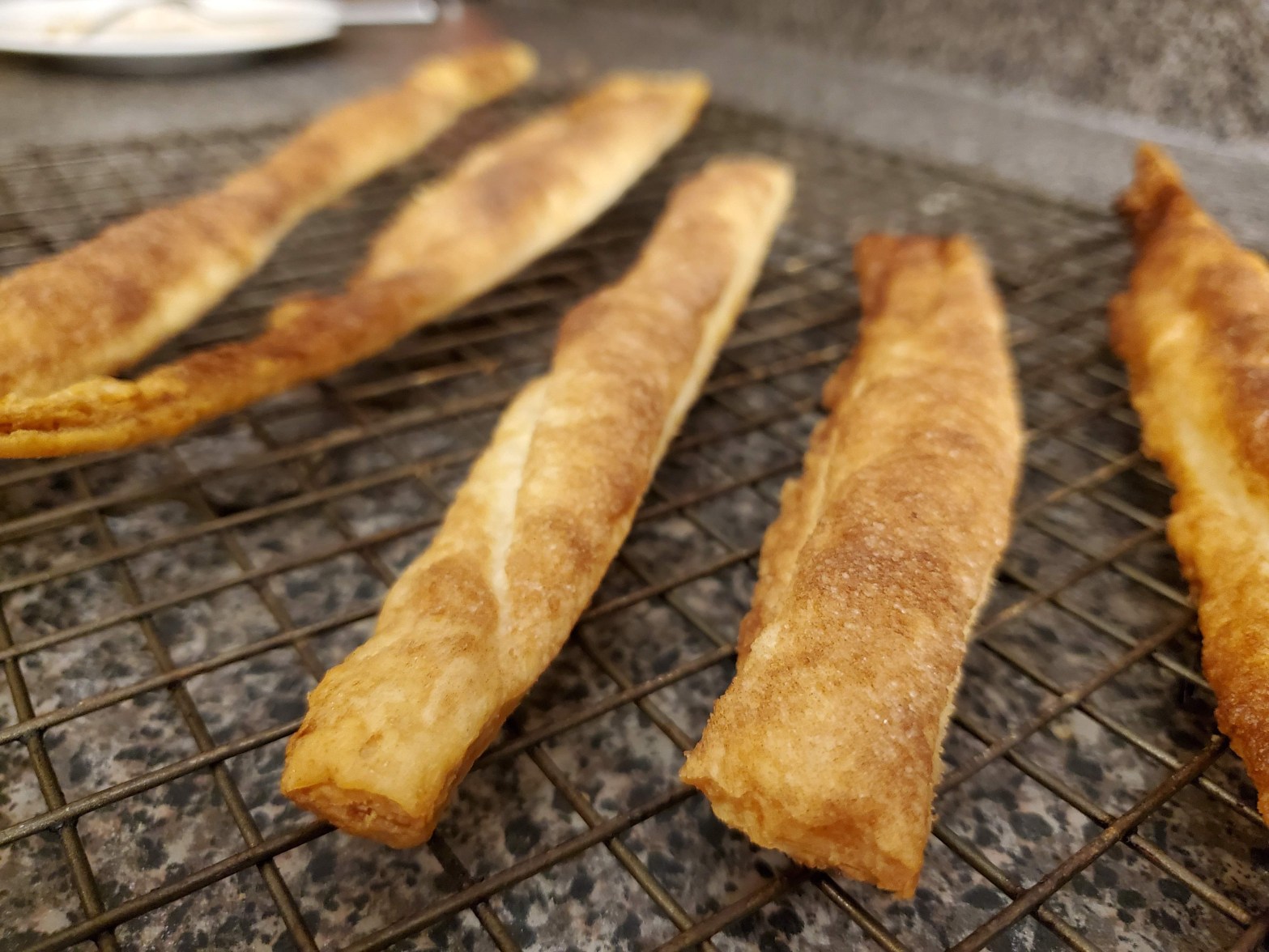 Method: place the scraps on a baking sheet lined with parchment or a silicone mat. Melt the butter, and brush the strips, then apply cinnamon-sugar to taste. Bake at 400F for twenty (20) minutes, and remove to a cooling rack.