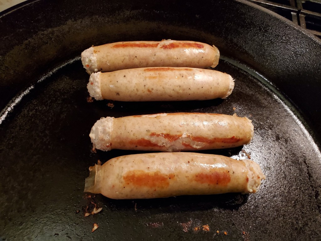 So, now for the high, dry heat. At this point, we’re fully cooked, but I want to get a crisp on that casing. We’re going into ol’ faithful over medium: