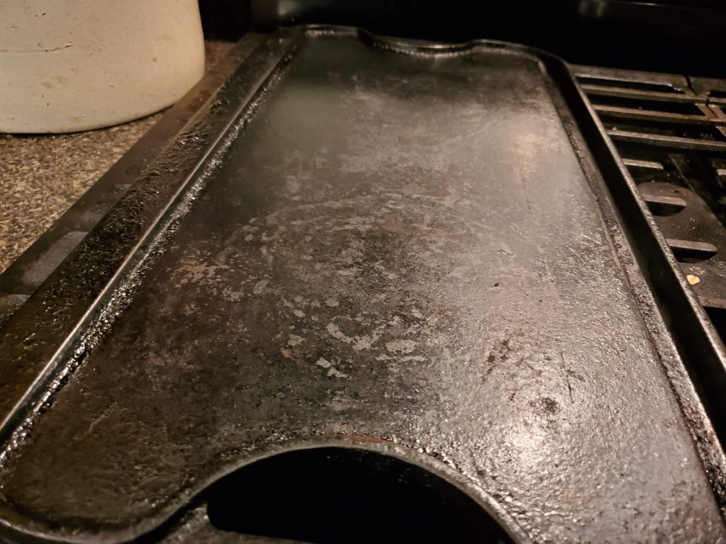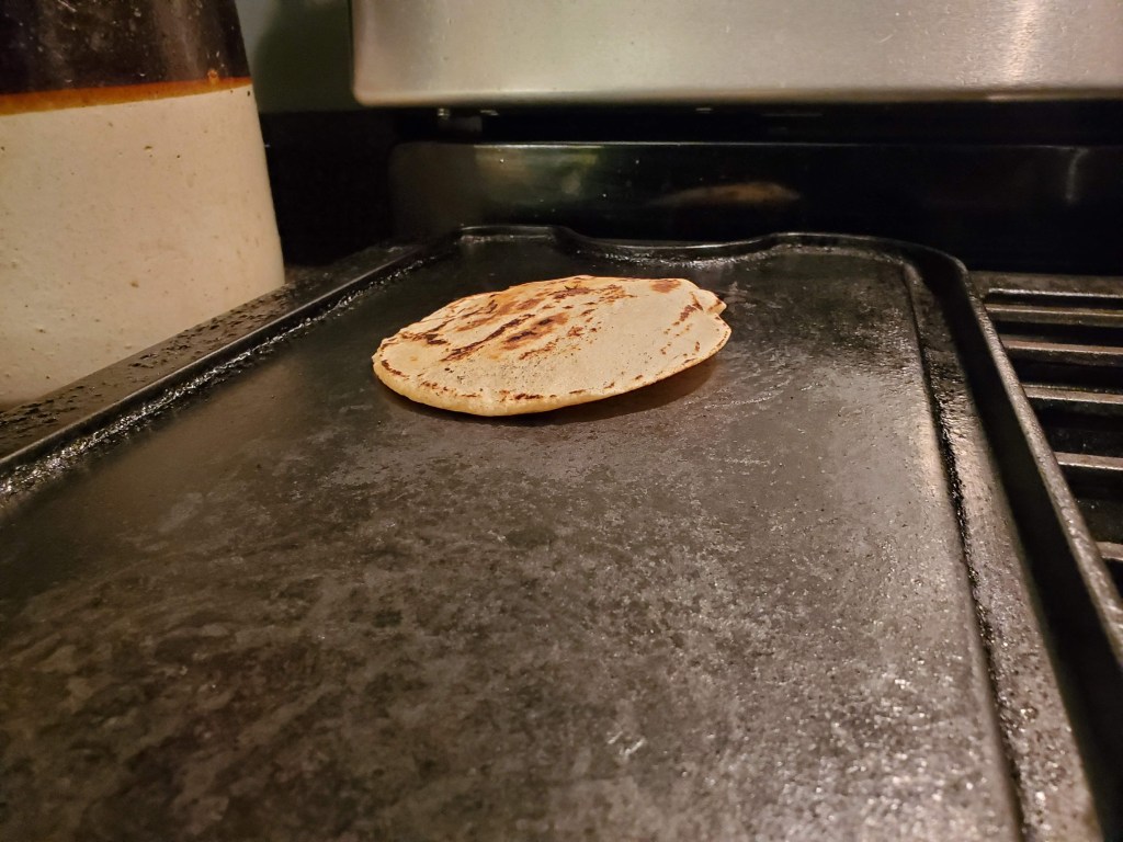 It took me FOREVER to come around to using this griddle. Almost all of the videos I watched had folks using nonstick pans or electric skillets, which in retrospect is completely perplexing. If you don’t have something like this, that’s fine. You’re just looking for something that won’t get hot spots (so, no cheap pans) and something with low sides for ease of flipping with a spatula.