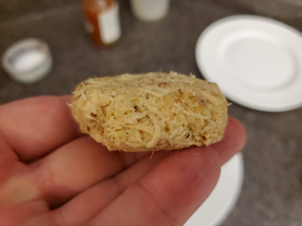 Step one: mix your tuna. Get the cans drained (obviously), and get your tuna mixed and seasoned to your liking. Hold back the egg and bread crumbs until after you’ve adjusted for taste. You don’t want this to be stupidly wet, but if it’s too dry (meaning not enough mayo or mustard), the end product won’t be great: