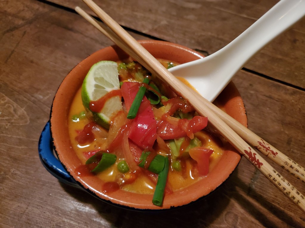 That said, by sheer luck I’ve washed upon the shores of a really delicious Thai coconut vegetable curry.