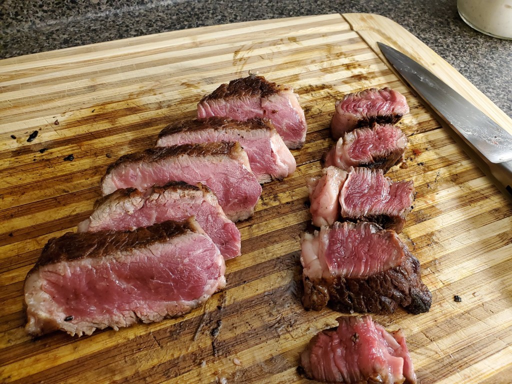Yesterday was vegan day for us, which is… fine. But today, the weather decided to give us a full preview of the upcoming spring, with high temps, sunshine, and wildlife, and I made the executive decision to reach into the strategic beef supply for our first steak of the season.