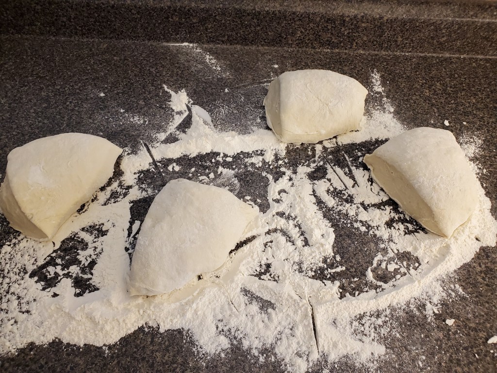 Your rise at room temp with this amount of yeast is probably going to take three (3) to four (4) hours, and you don’t want to skimp here. Let it get good and *floofed* before moving on.