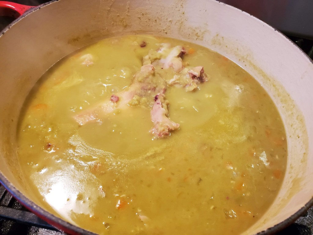 Step three: simmer. Bring your water to a slow boil, then back the heat back down to a simmer, and give everything a stir. When the peas start breaking down, they’ll have a tendency to want to stick to the bottom of the pot, so don’t ignore this completely. That said, you’re probably looking at two (2) hours of simmering to get where we want to go.