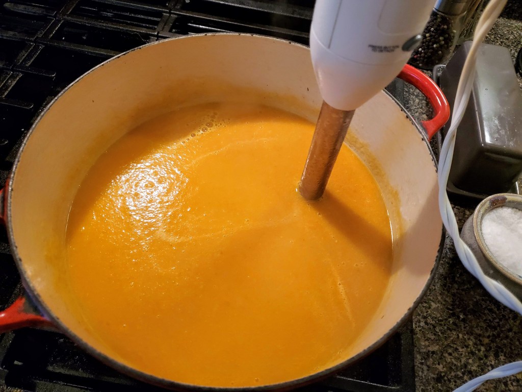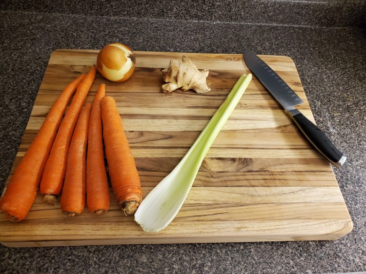 Every so often, on a cloudy day at the front-end of a week, Mrs. 10Chickens will descend from her home office mid-morning and mention “vitamins” and “carrots” in the same sentence, and I know that’s my cue to get to work on this soup.