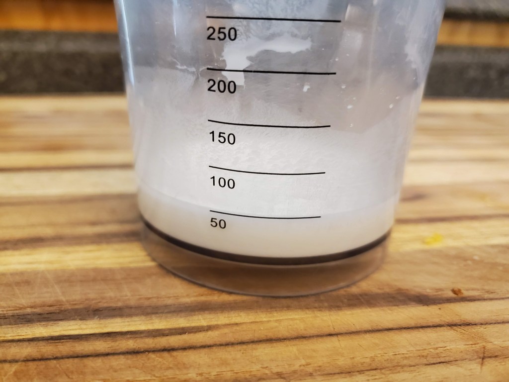 My total volume here happens to be almost exactly 50ml, but I’m still going to add this slowly, as the potential is there to really seize up into glop if you’re not careful.