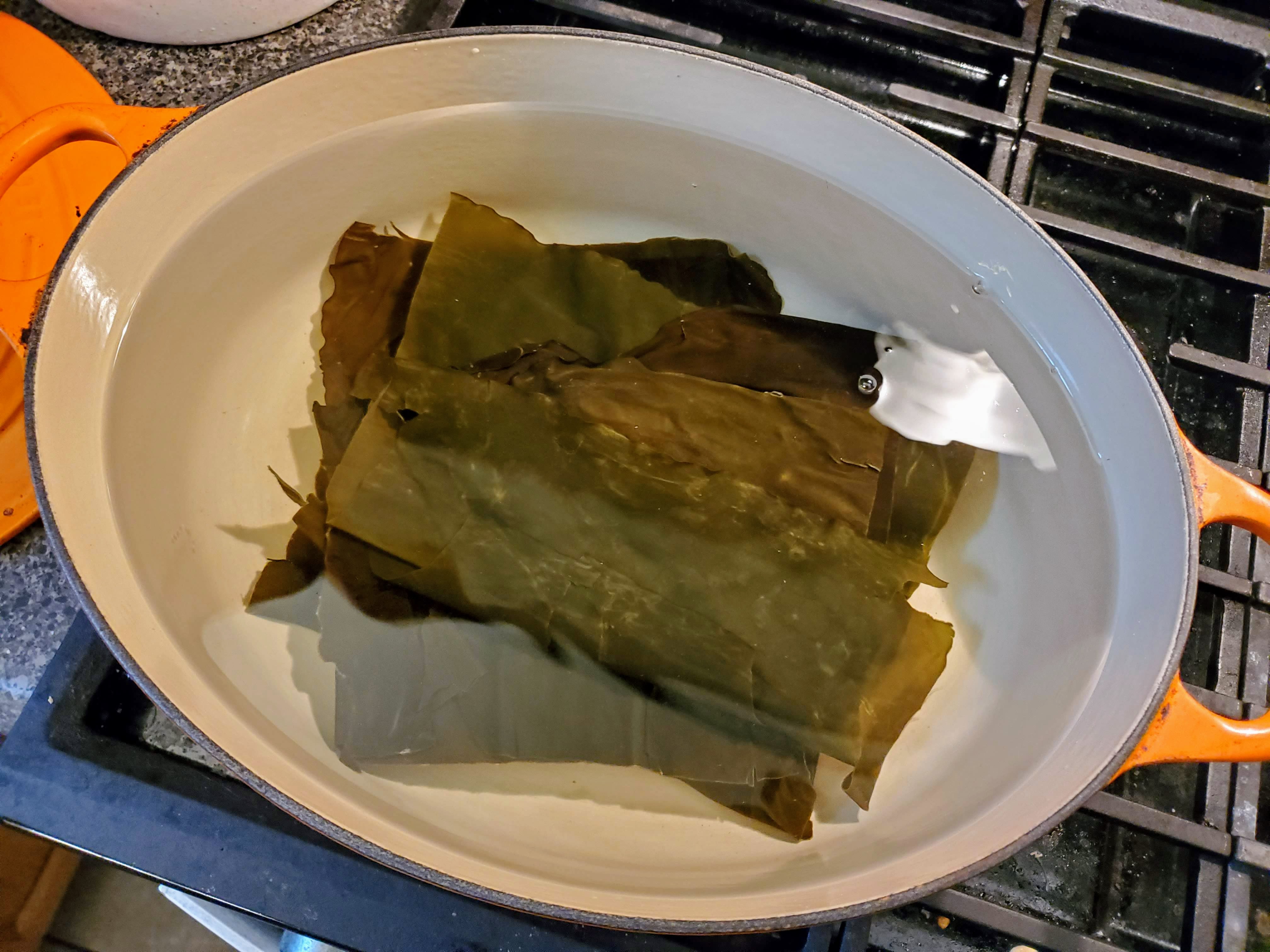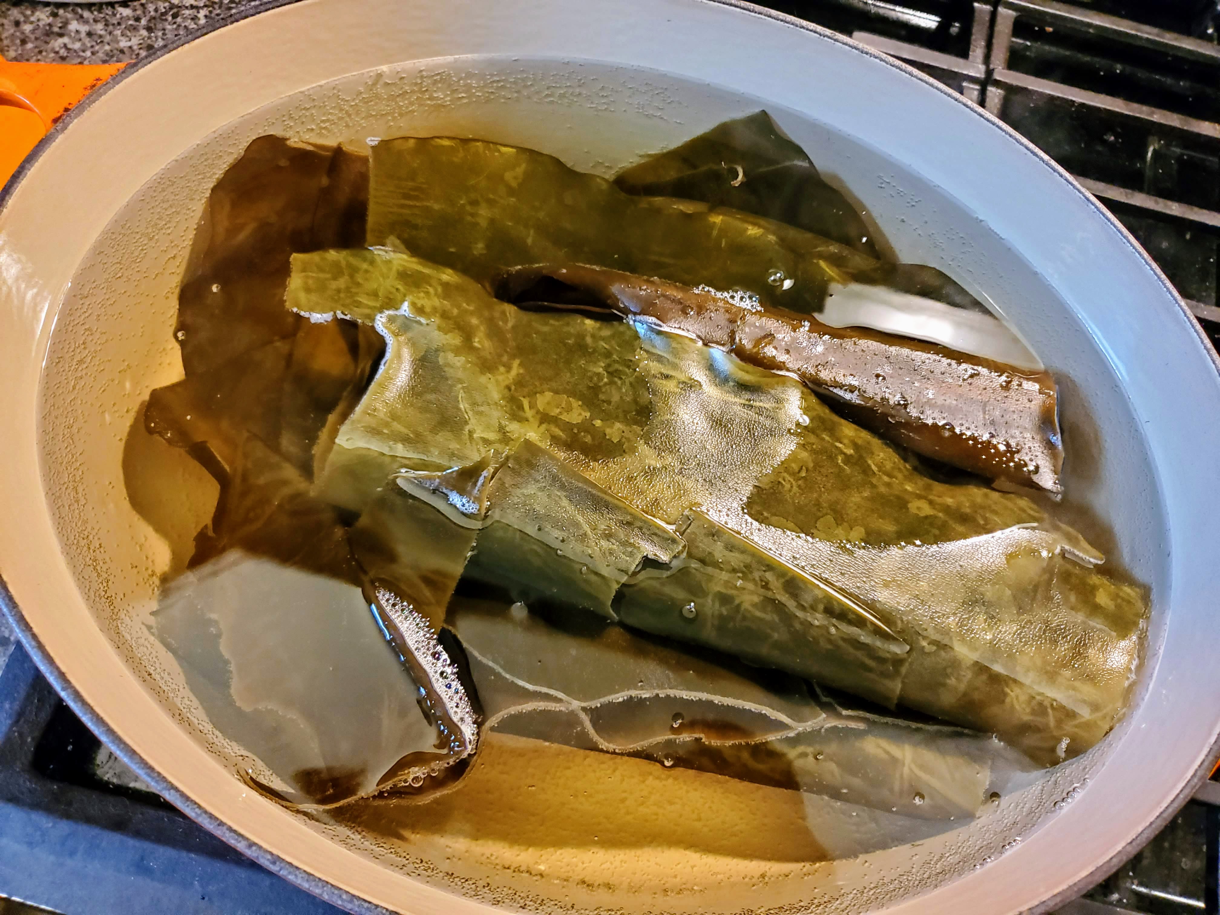Get your kombu in a big pot of cold water, and put the heat to it: