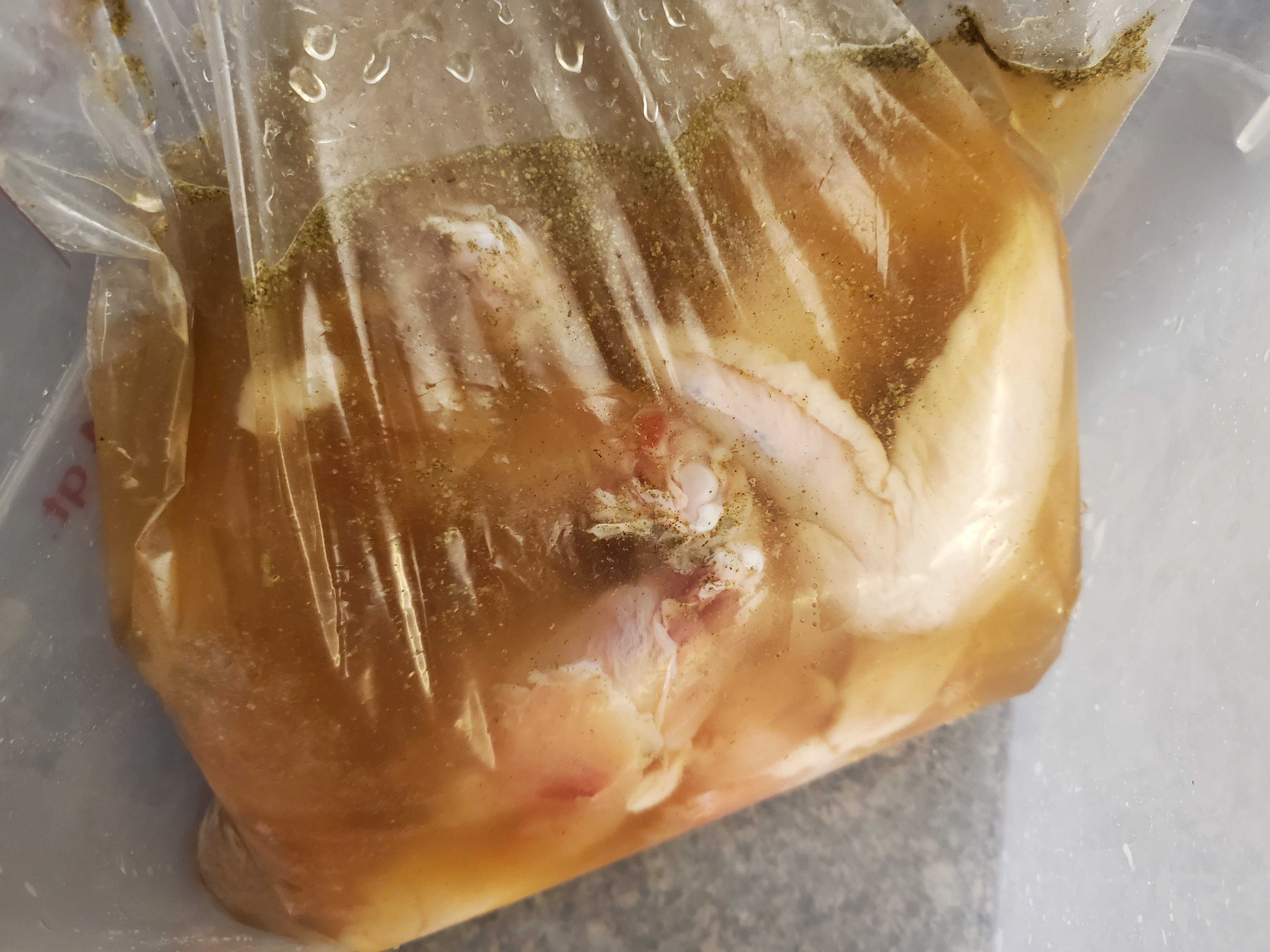 Anyway, that’s almost it for the brine, except it isn’t. It would be a real shame to waste all that osmotic action on just salt and sugar, so I’m adding a little bit of dried sage since we are going for classic buffalo here. Were we doing jerk, I’d consider cloves or allspice. You get the idea.