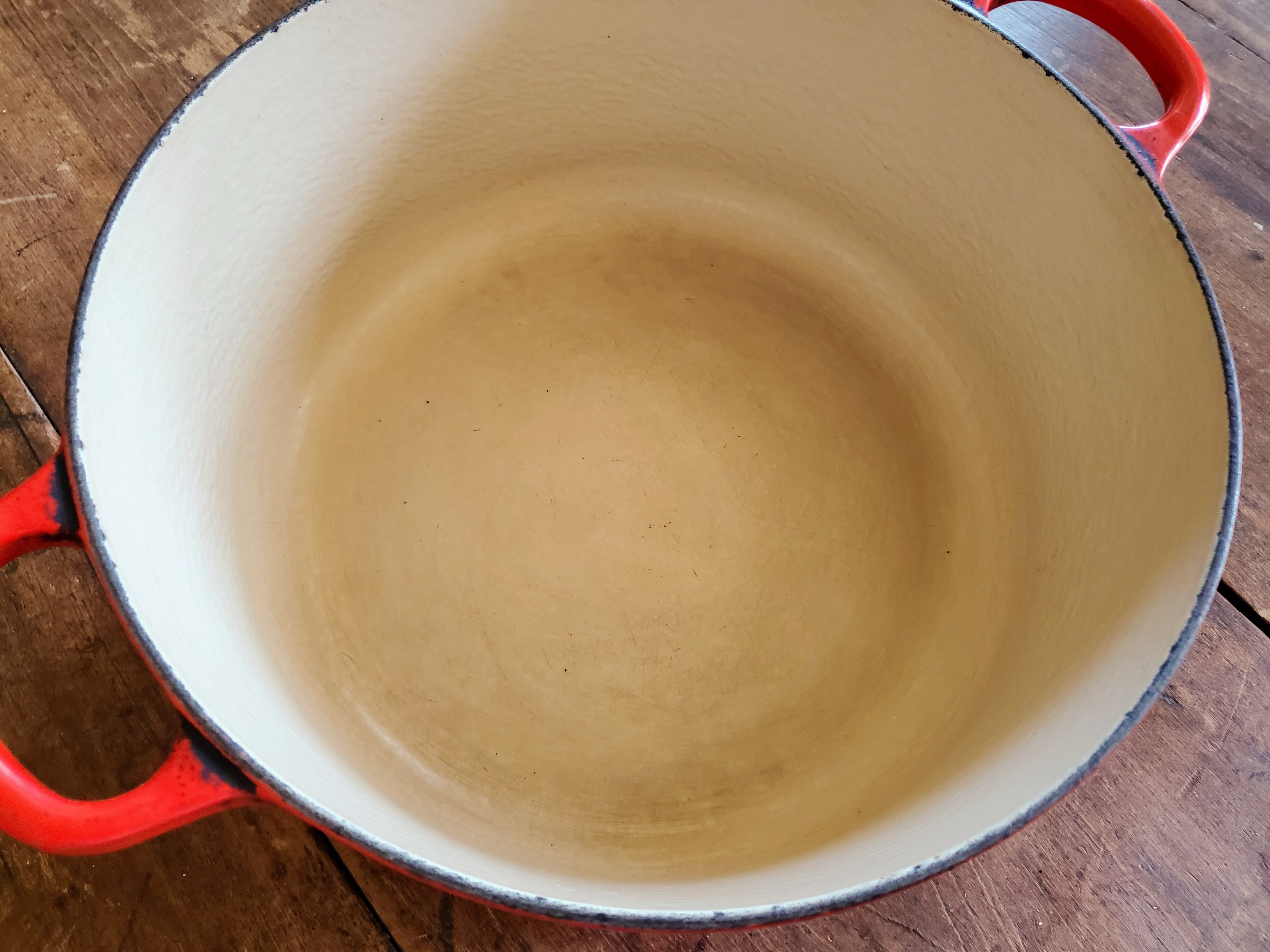 So, the big downside is these CAN BE expensive, but the truth is you don’t need to go with the big name brand, and every piece of enameled iron cookware I have (and I have a lot) came from thrift and discount stores. Also, depending on the brand, some of these have really great warranties in case you accidentally drop it on a brick patio after taking off the charcoal grill in 2015. But I digress.