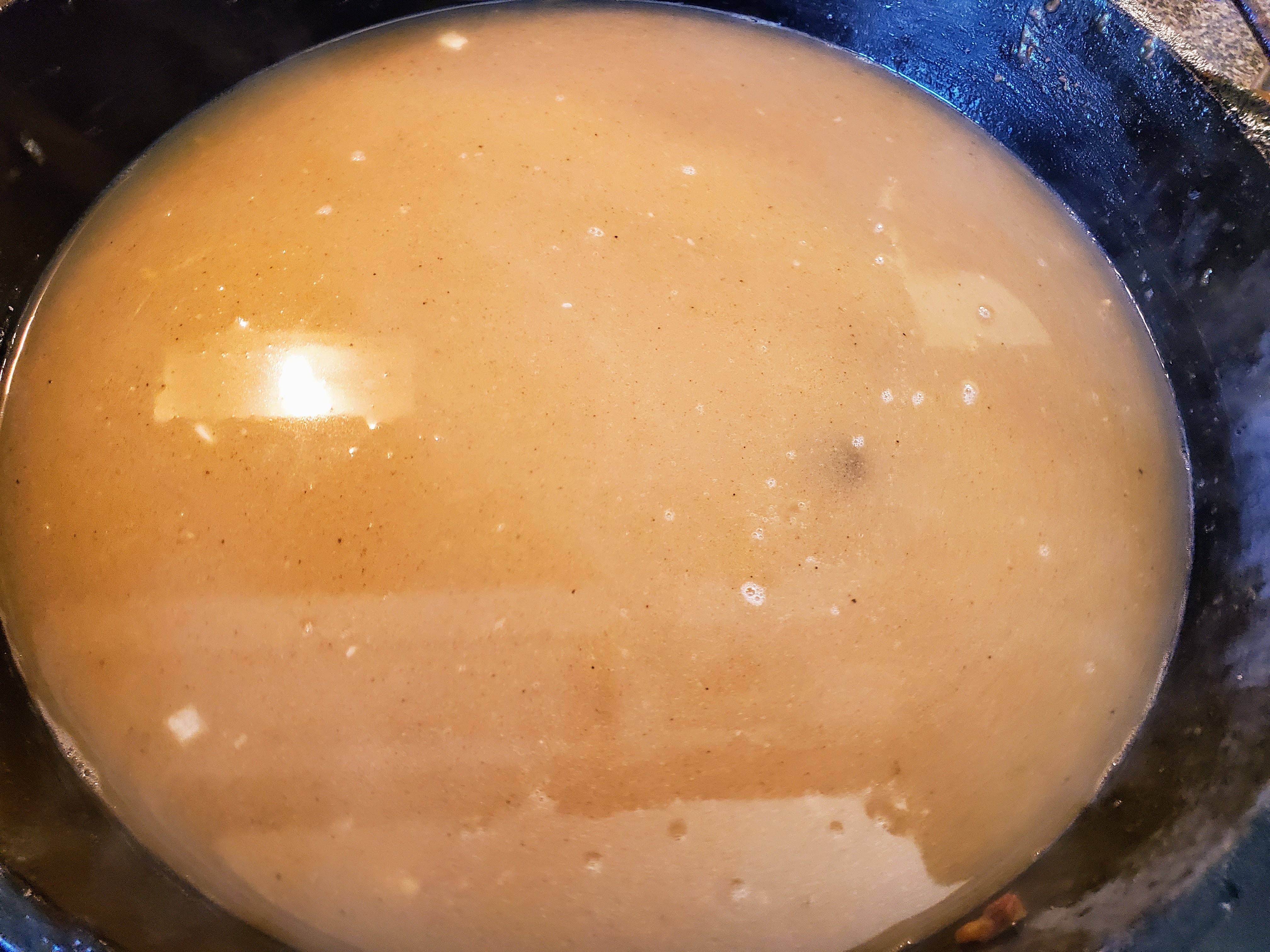 We’ve covered roux before in our pot roast recipe, but quick refresher: it’s a thickening mixture of equal parts fat (butter or oil) and flour, cooked to various stages of doneness depending on your end goal. Lightly cooked, or blonde roux, has a lot of thickening power, but doesn’t taste like much. It’s great for white gravy on chicken-fried steak, for example. Dark, or brick roux doesn’t thicken a whole lot, but is FULL of nutty, smoky flavor. We’re going to have other thickeners at play later, so we want the same brick roux we used in that pot roast post.
