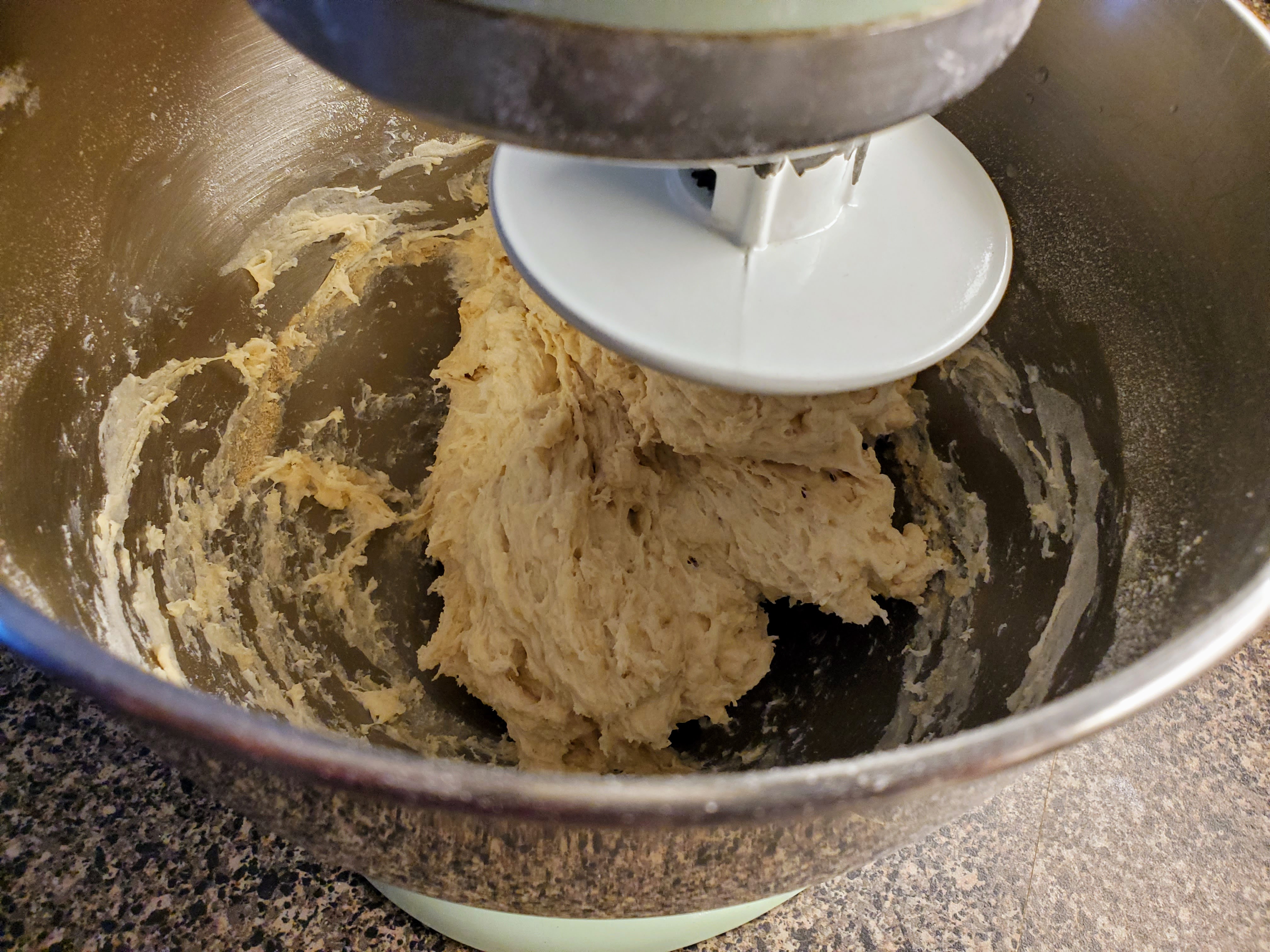No surprises here, or elaborate methods of mixing. Literally, just get it in a bowl together and go to town. I use a stand mixer because this dough is both sticky and kinda dense due to its relatively low hydration (60%). You can absolutely do this by hand, just know it may be a bit of a workout.