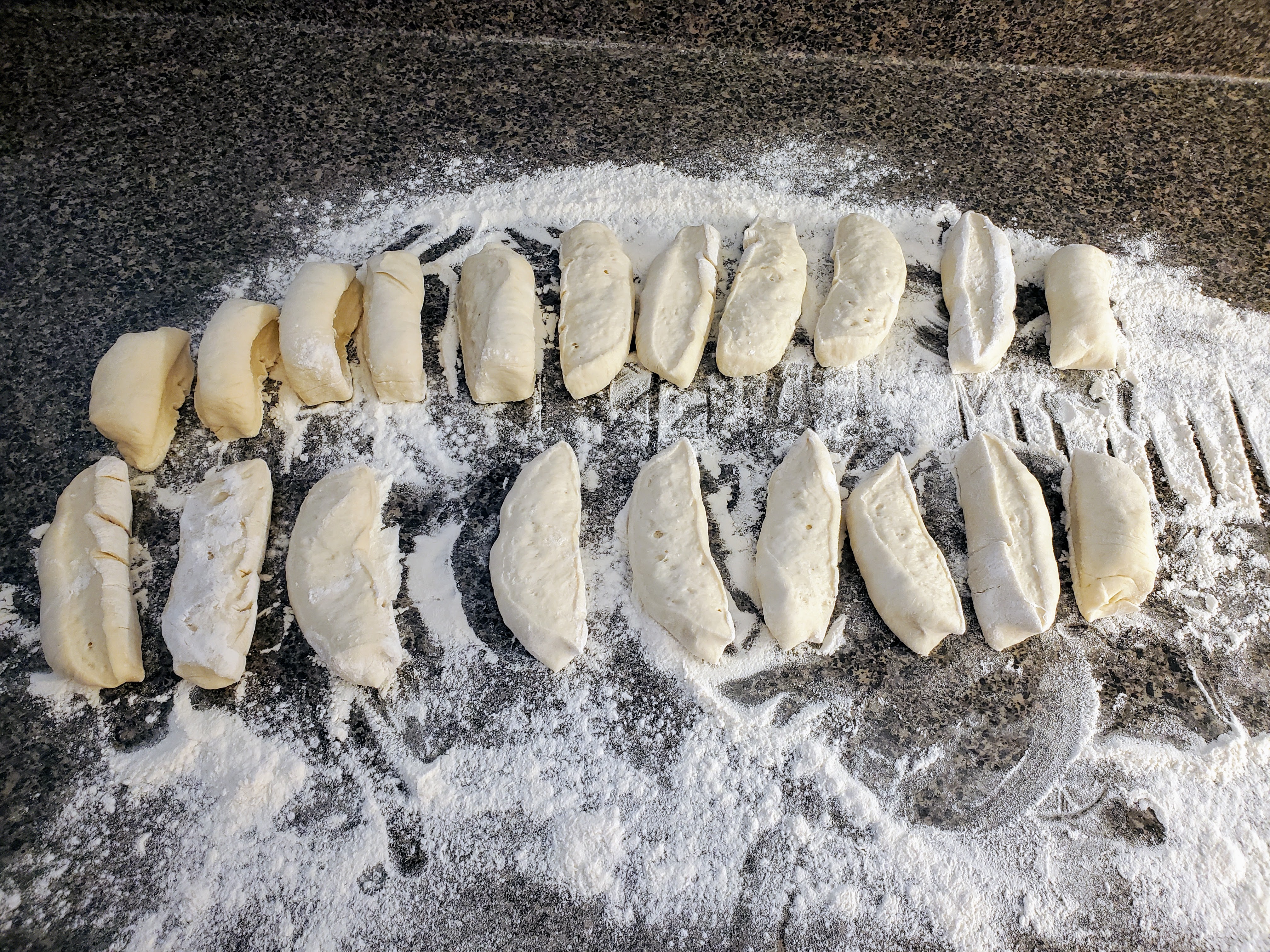 I like to shape the dough into a big snake, for many reasons, some of which relate to cooking.