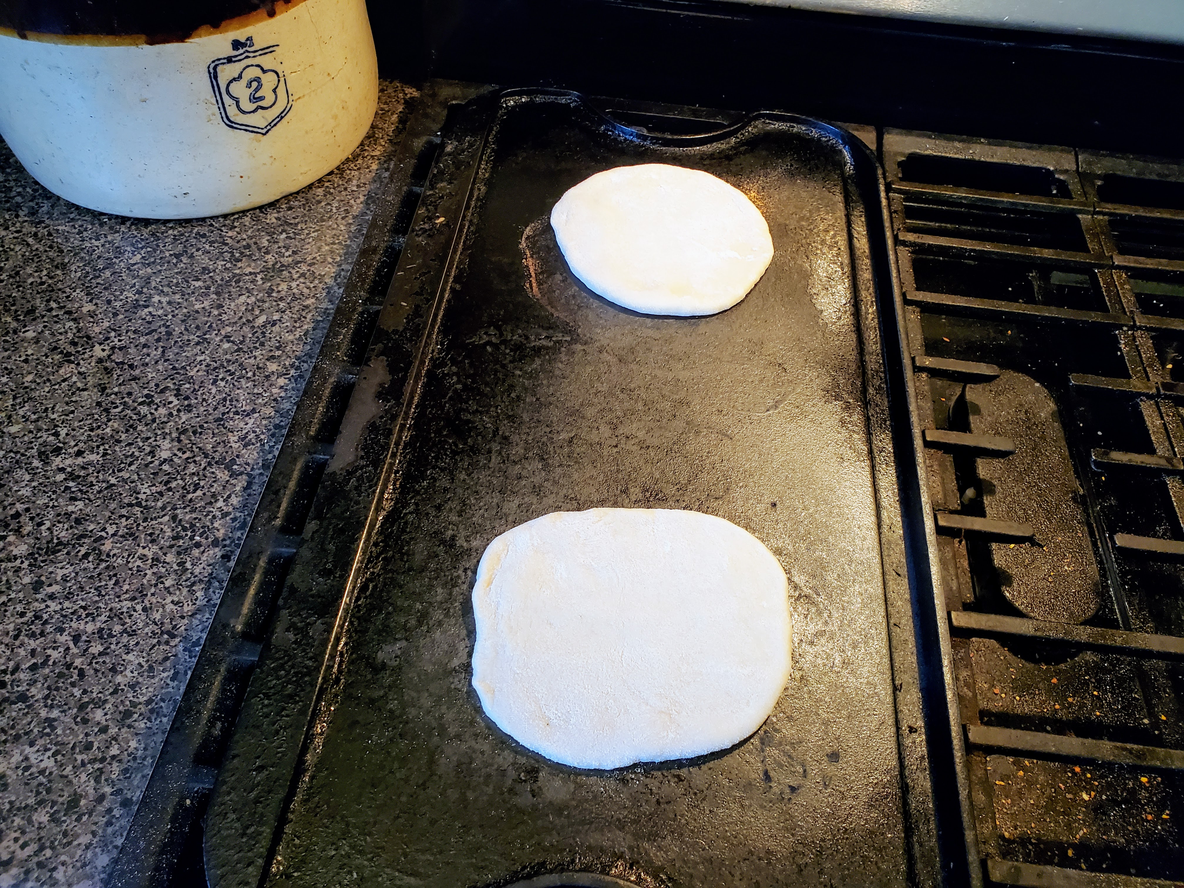 Stand by and let them cook for a few minutes, then flip again. NOTE: you’ll probably want to open a window as the residual flour will toast and smoke a bit on the pan.