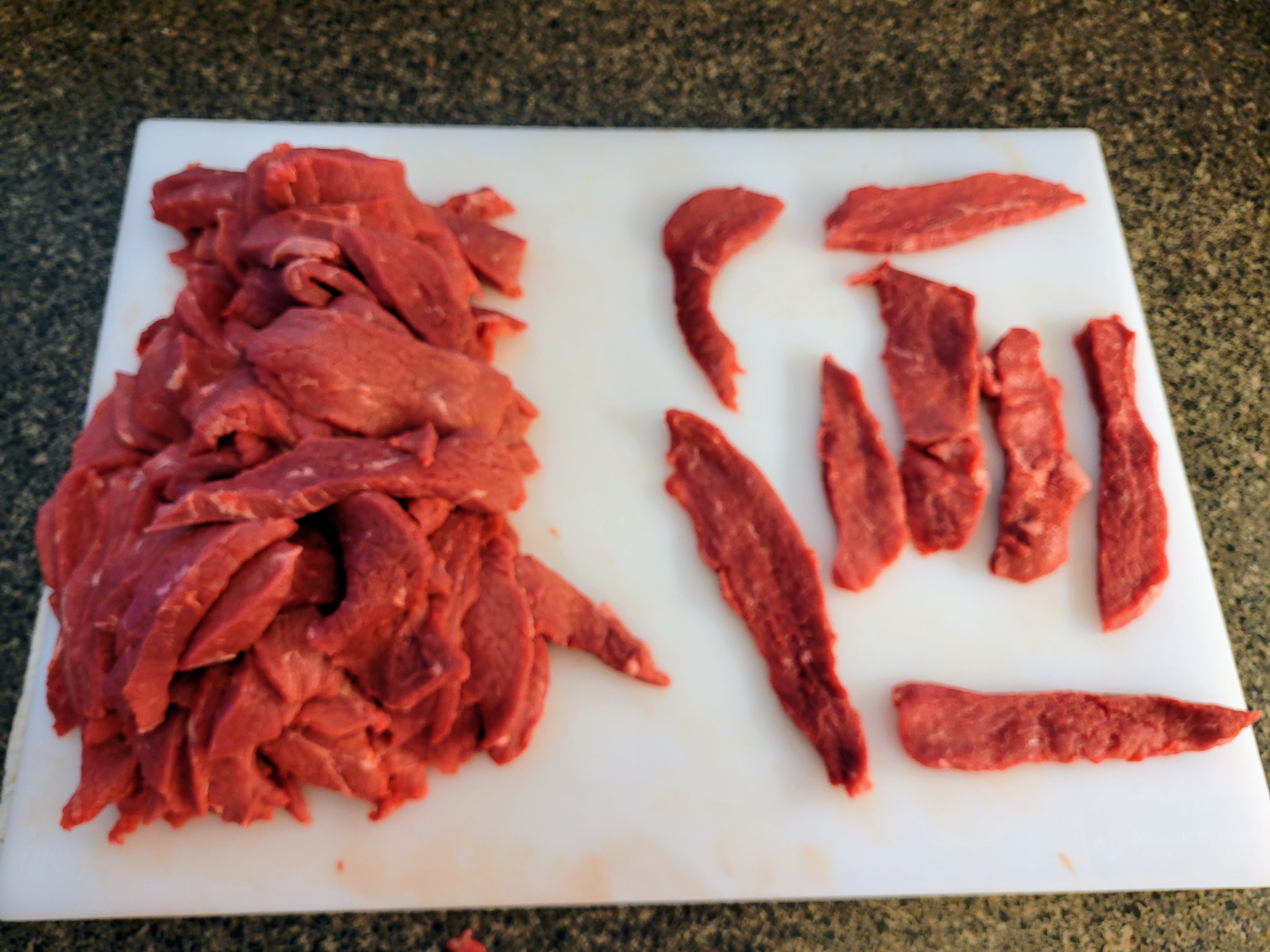 From here, there are a LOT of fun, non-jerky things we could do with this (like hot pot, or cheese steaks, or stir fry, or… what were we talking about?), but keeping our eyes on the prize, I like to break these down even further into strips: