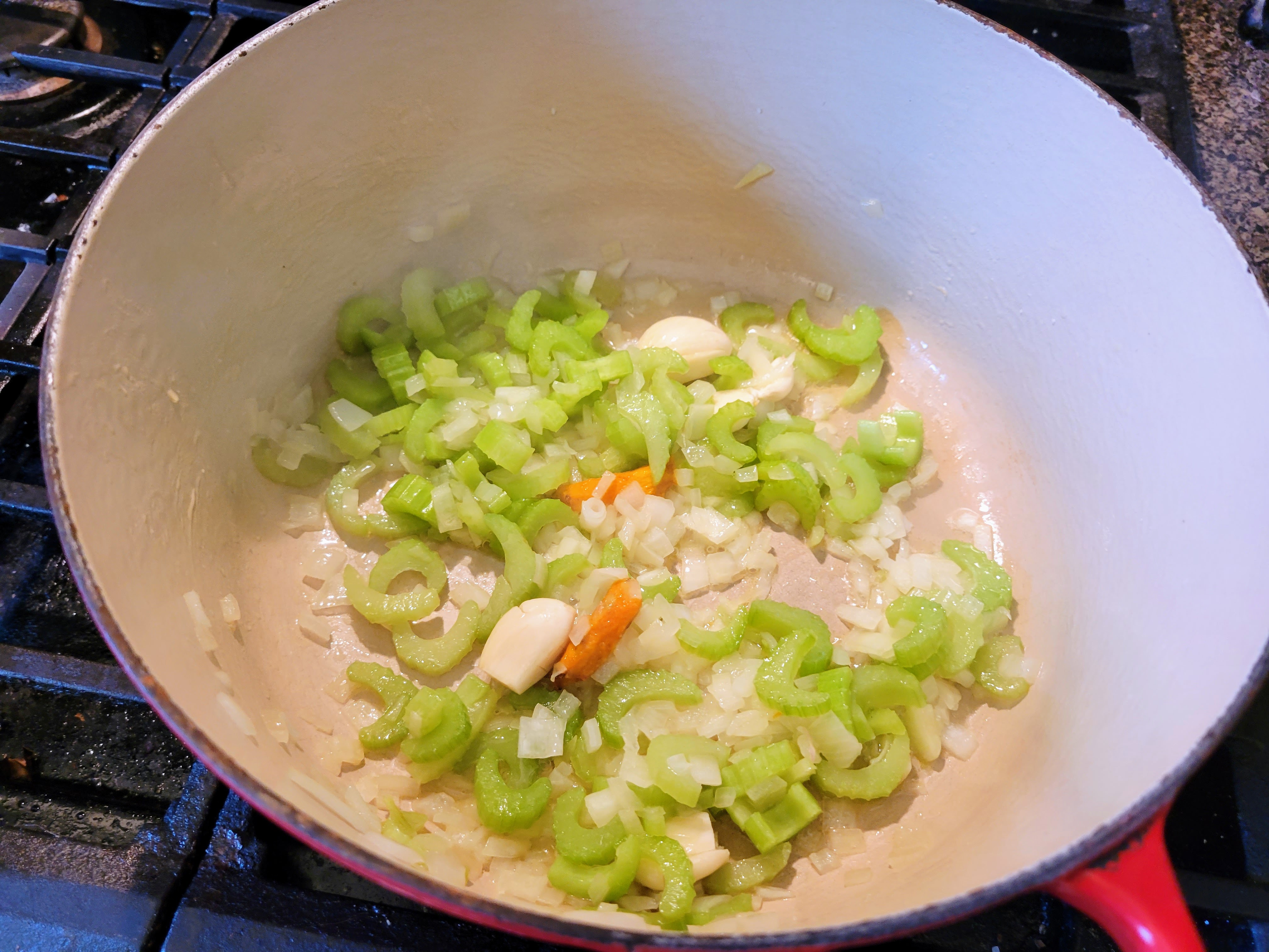 We’ve talked a lot about this next step over the years, and it’s still the same. Get your other tablespoon of oil heating over low heat in a big soup pot or Dutch oven while we address our aromatics:
