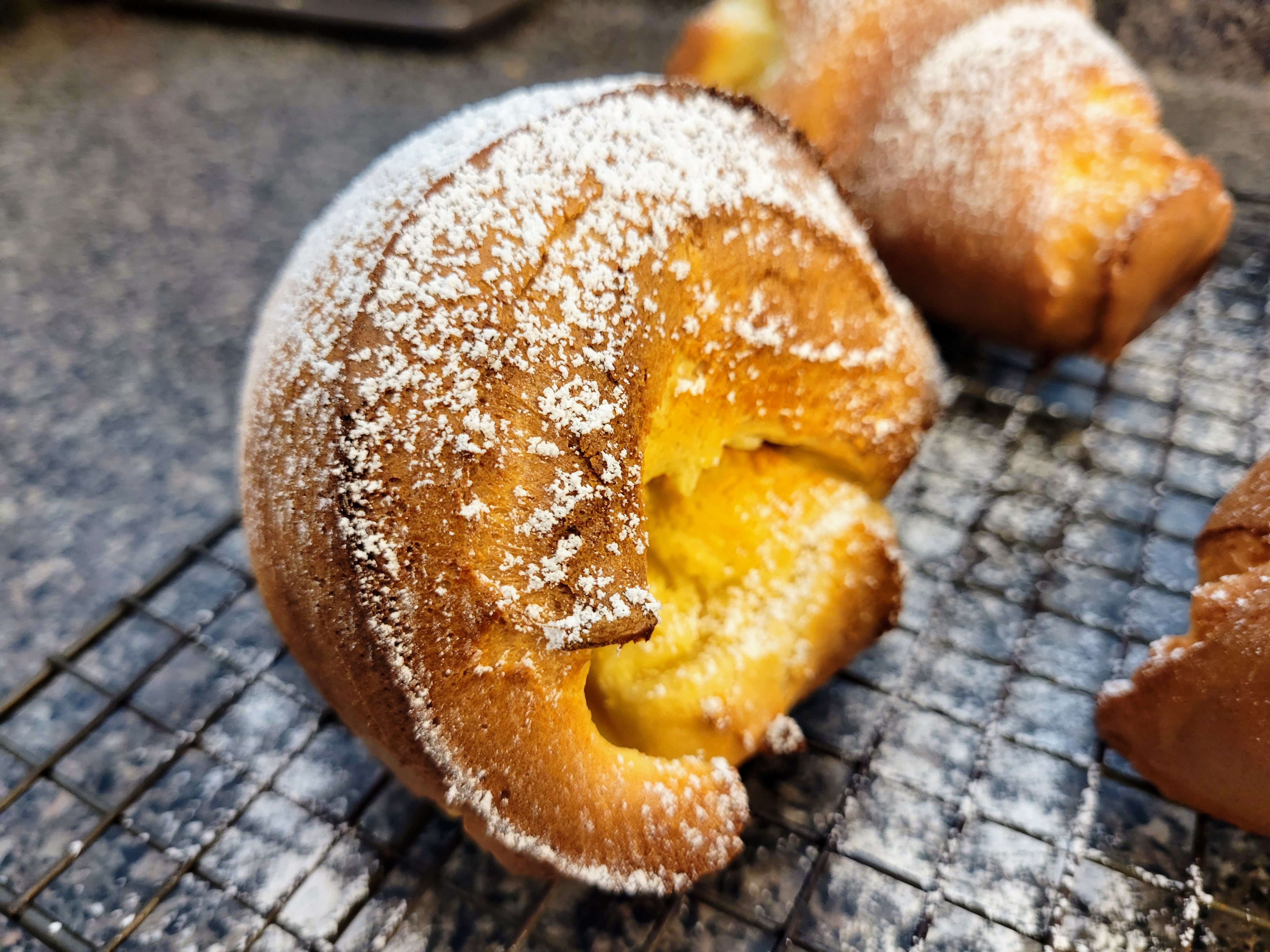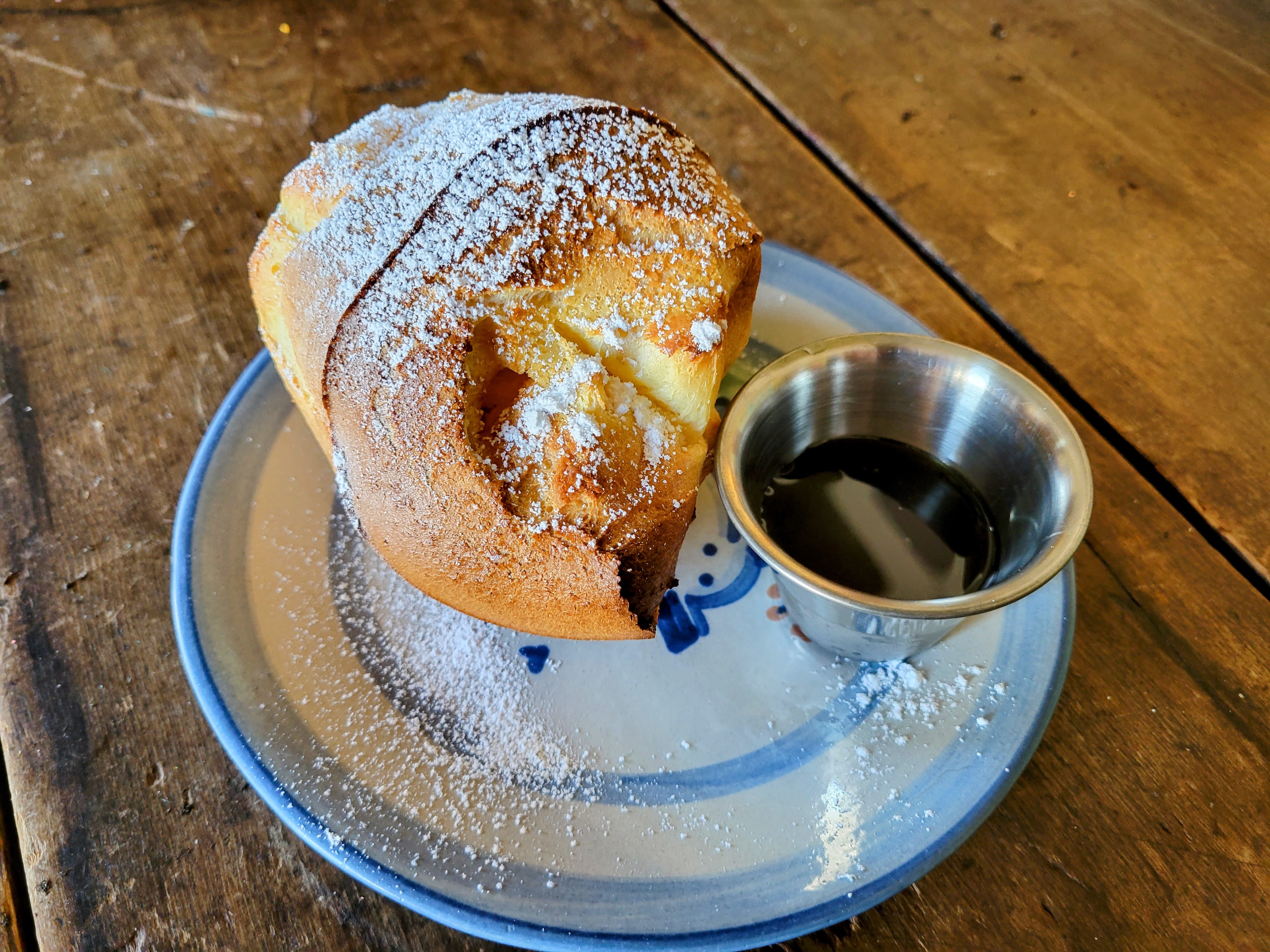 So, what’s with the pre-heating? Well, you’ll probably notice there are no leavening agents in this thing. No yeast. No baking powder or soda. Nada. Rather, all of the lift comes from the structure of the eggs and flower themselves, kind of like a sponge cake. However, instead of a bunch of tiny bubbles (like a sponge), these produce one big bubble in the middle.