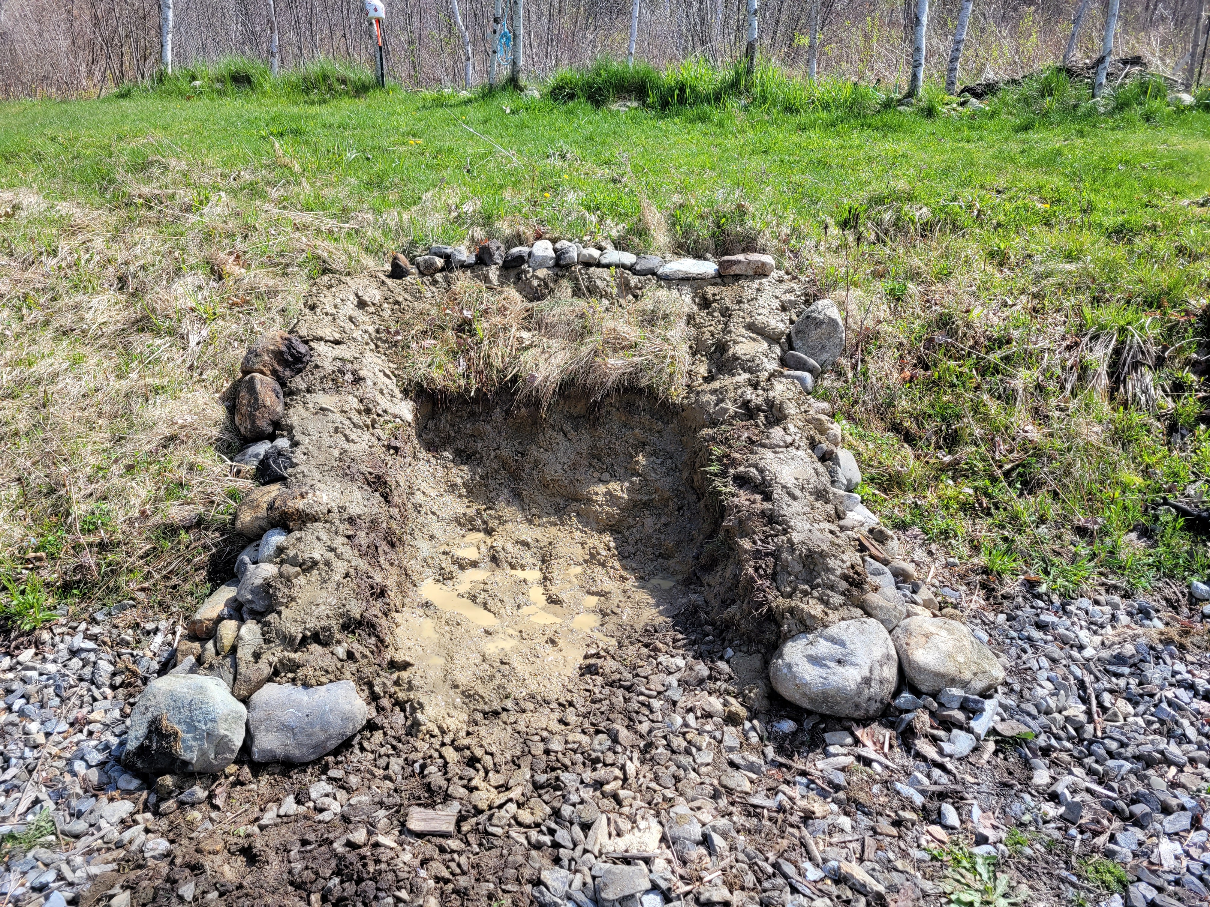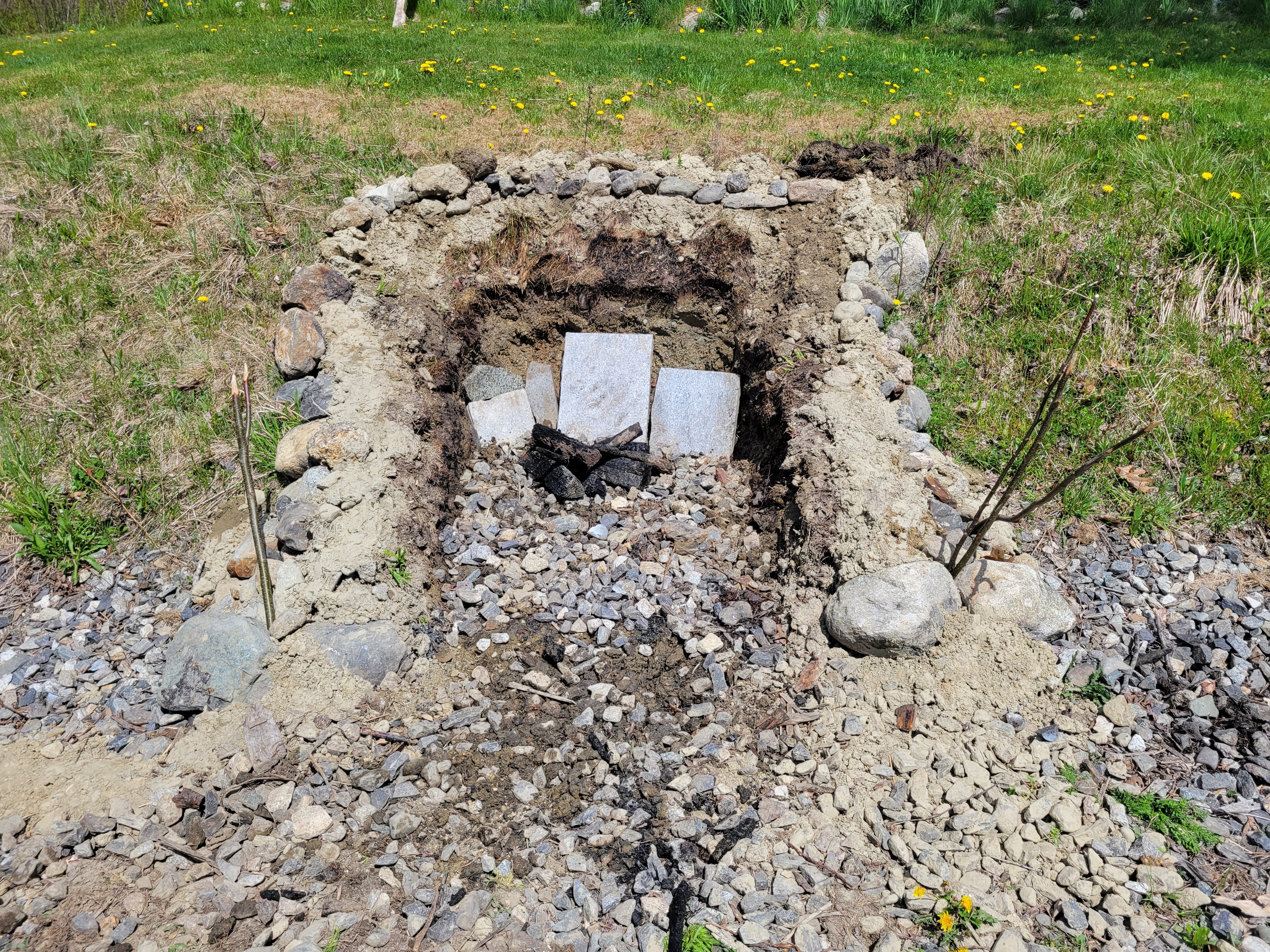 Progress was slow, but consistent, and I was able to put some of those famous Maine rocks to good use outlining the shape of the kitchen.