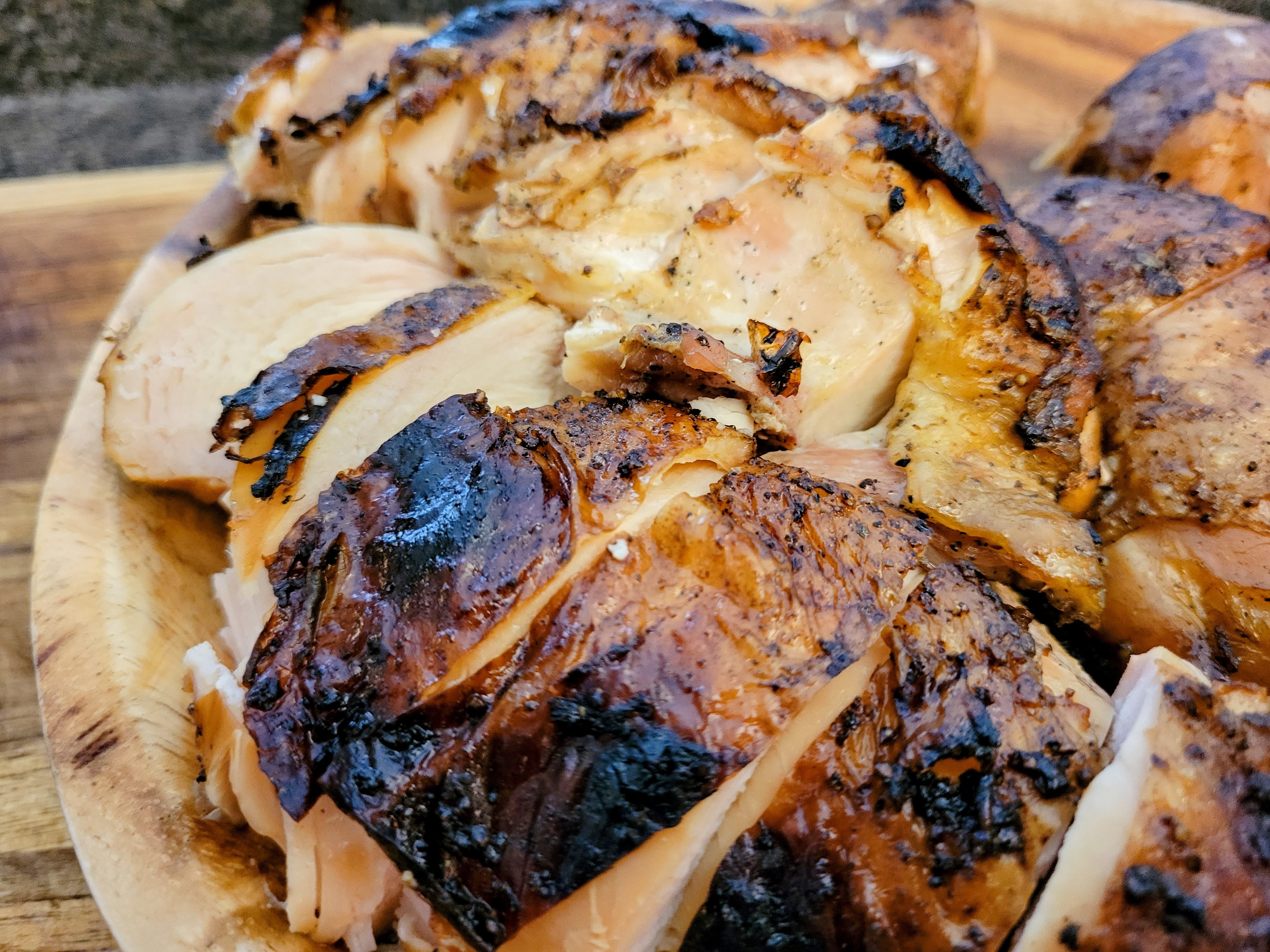 Again, because Maine, we had some big hunks of granite on hand, which I thought would make a good heat-sync, and deflector back toward the food. Speaking of which, it was time for a test-cook. As this is 10Chickens, I went that direction: