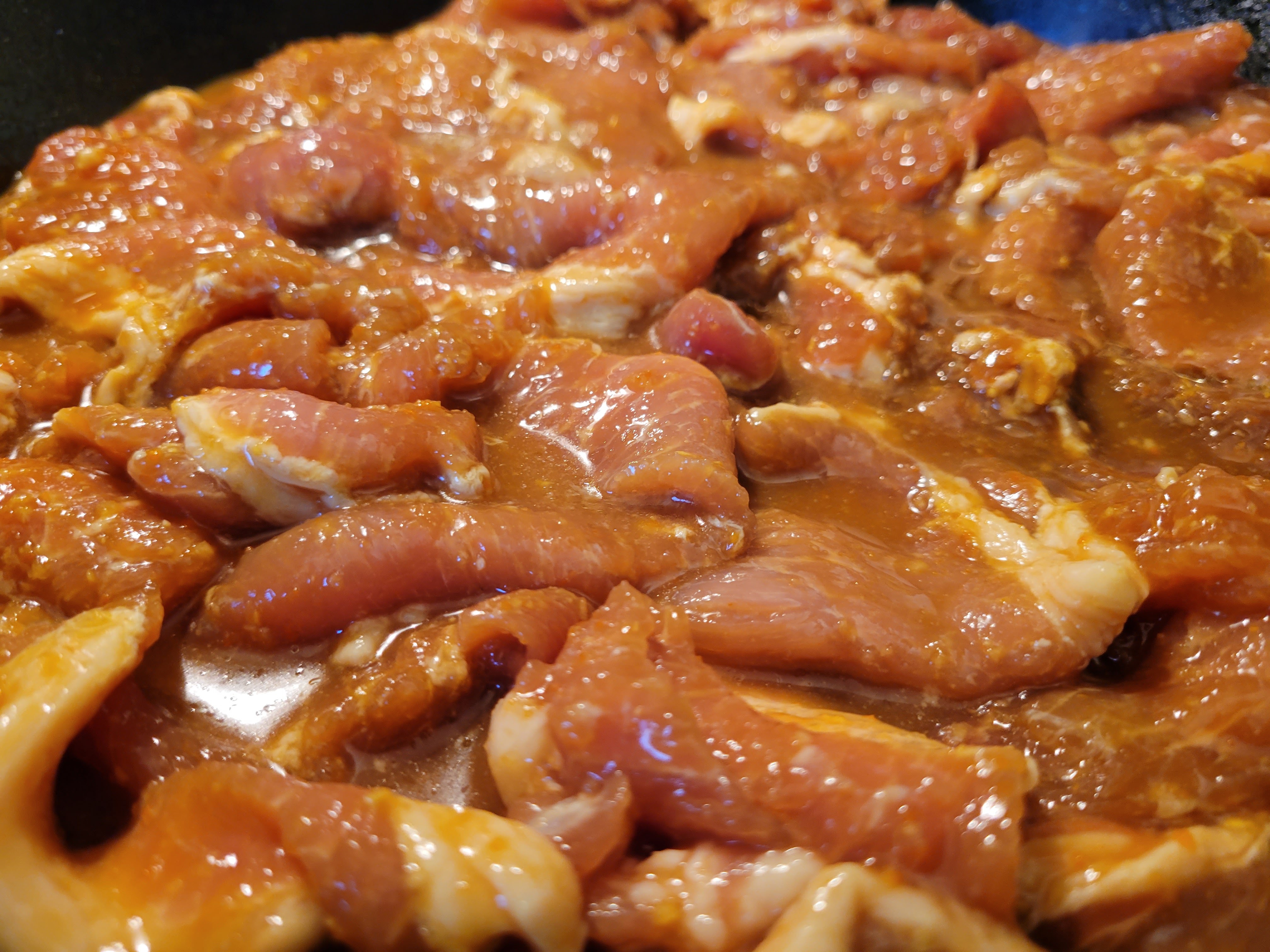The point is this brine/marinade/ambrosia works great on big thick chops, thinner cutlets, or shaved-down morsels, but each will need a slightly different treatment. Ultimately, the soak should be at least two (2) hours, and up to four (4), HOWEVER, the thinnest cuts will be too salty after the four (4) hour mark. Conversely, chonker chops will need the full time, and really can go longer. It’s just something to think about.
