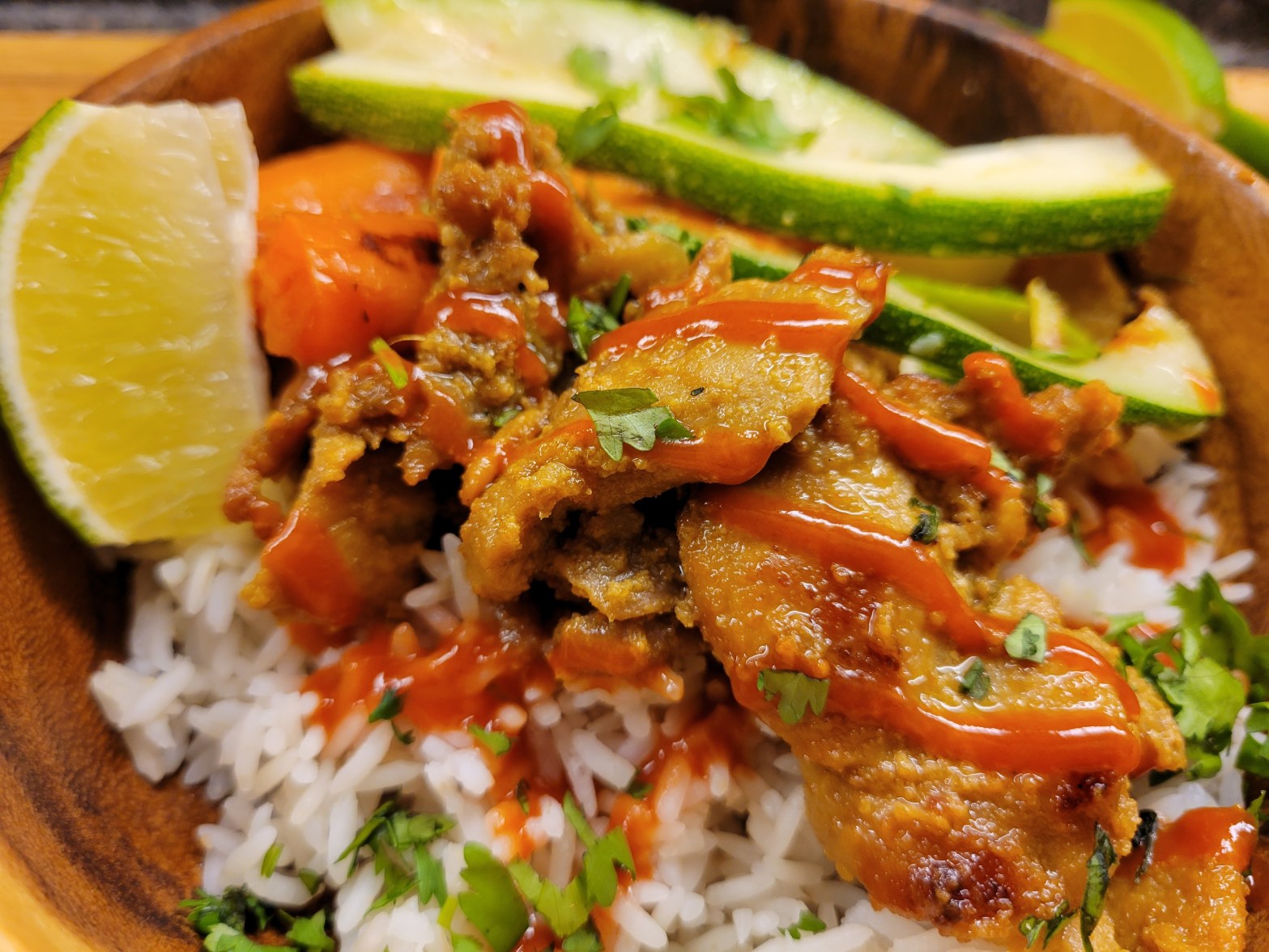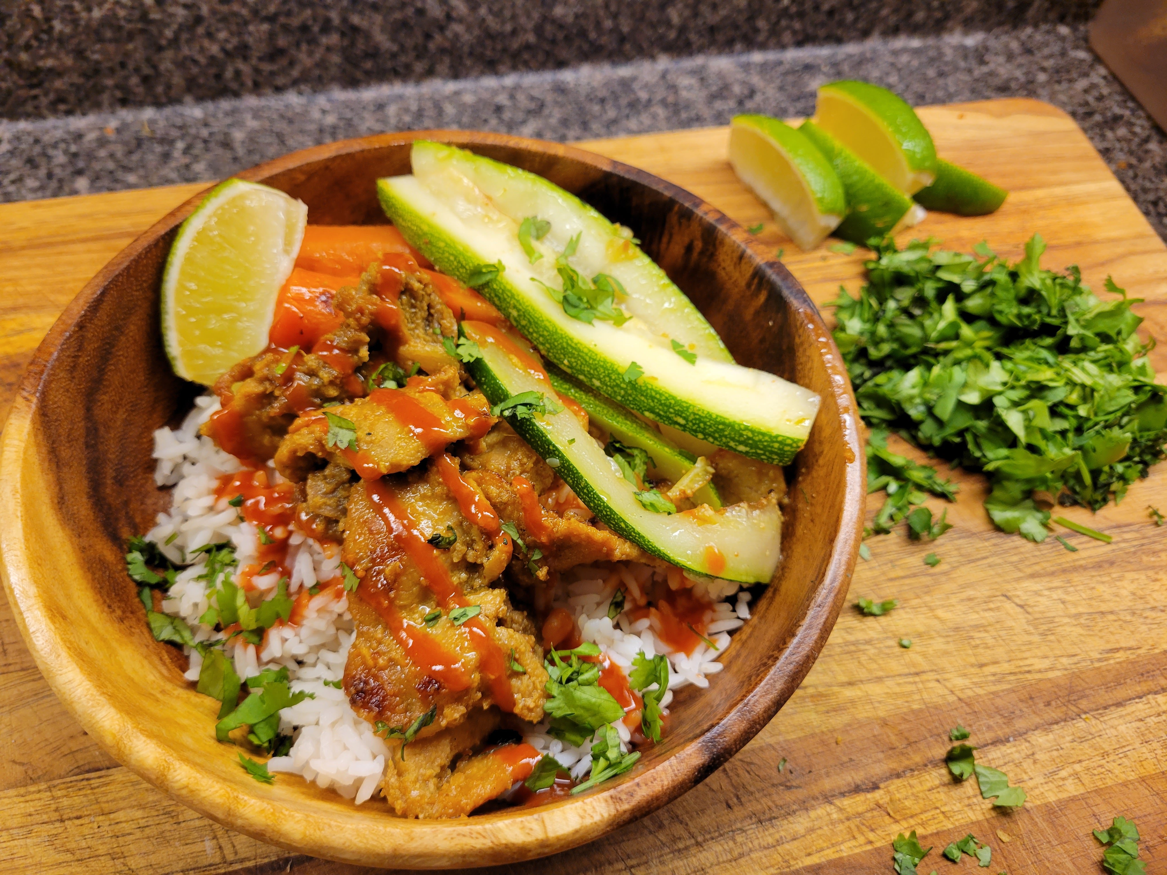 Technically speaking, that’s the end of the recipe, but in practical matters it’s only the beginning. How to use this? Well, get a skillet good n hot, add a teaspoon or so of veg or canola oil, and a portion of the meat. Sear it hot, get some color on it, and add to a sandwich with garlic-lime aioli. Or, like we did tonight, toss in some steamed veggies and serve over rice with some fresh cilantro, lime, and a healthy dose of knock-off sriracha. Or add some crunchy kimchee and a little dose of crema to a tortilla for a berserk taco. Seriously, once you taste it for the first time it’s hard to stop saying “you know what this would be great in?” It really is that special.